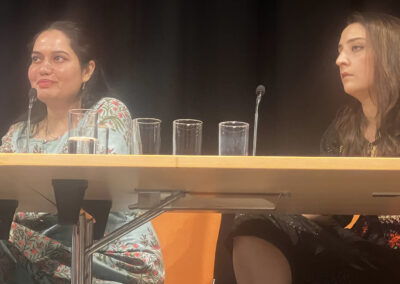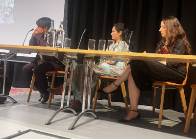It was then our turn: a panel comprised of BUA50 Chair Alan Critchley, BUA50 Technical Adviser Paresh Solanki and renowned international cameraman Bhasker Solanki looked at how the media covers stories around mass migration, with a particular focus on the Ugandan Asian story. We told an enthusiastic audience of around 80 about our oral history interviews, and showed excerpts from these as well as our launch film, I Walk This Path.