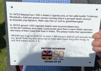 British Ugandan Asians at 50 Highlighting the experience of British Ugandan Asians in and after 1972, and the many volunteers who helped them. Photos: Tywyn Tree Planting, Tywyn, North Wales 7 – 13 October 2022 During the exhibition, there was a tree-planting ceremony, marking this episode in Tywyn’s own story. Back